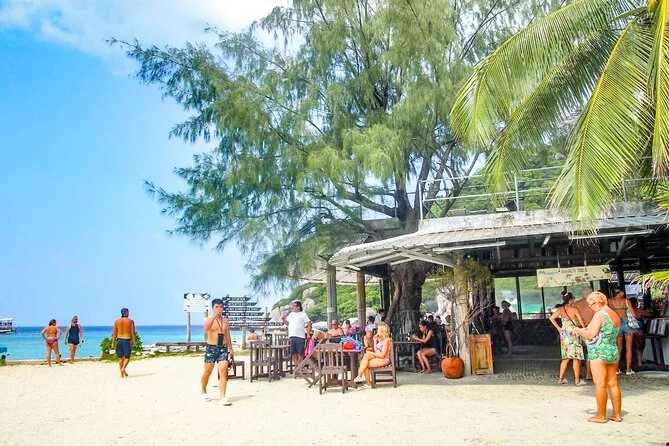 Aow Leuk Beach a été mon arrêt préféré — sans doute parce que l’eau y était plus chaude, ou parce qu’un gamin du coin nous a fait signe depuis le rivage avant de plonger comme s’il appartenait à la mer. On pouvait voir les bancs de poissons de très près, sans avoir à s’éloigner du sable. À Shake Bay, Nok a pointé du doigt des requins pointe noire (“pas d’inquiétude, ils sont timides !”) mais j’ai surtout flotté, écoutant les sons étouffés sous l’eau mêlés aux rires venant du pont. La journée s’est doucement fondue dans le coucher de soleil — les odeurs de BBQ fumé flottant sur l’eau pendant qu’on remplissait nos assiettes et que le ciel virait au rose orangé. Quelqu’un a mis de la musique doucement près de la proue ; on avait tous l’impression de ne pas vouloir briser ce moment magique par un mot trop fort.