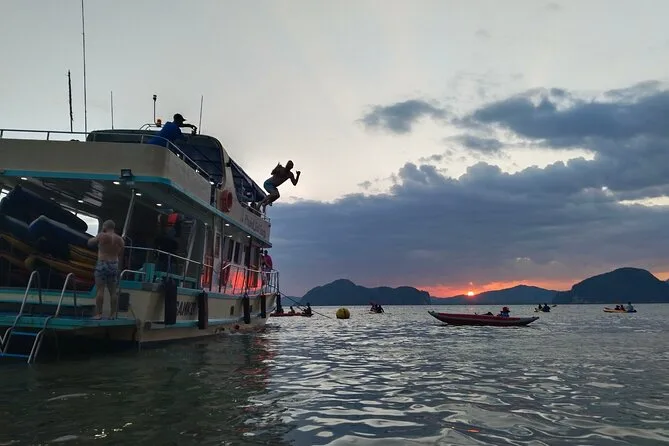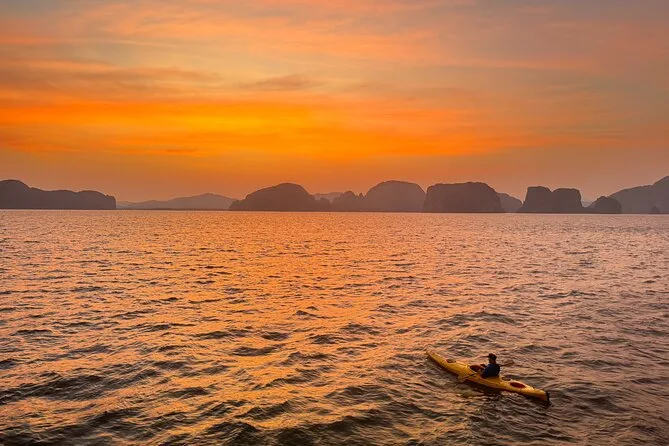 Petite croisière au coucher du soleil dans la baie de Phang Nga avec balade en canoë dans les grottes et visite tardive de l’île de James Bond