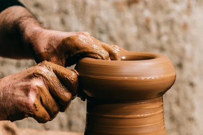 Votre visite comprend tout le matériel nécessaire pour la poterie dans un atelier familial d’Avanos ainsi que de l’eau en bouteille ; il vous suffit de venir (et peut-être de porter des vêtements que vous n’avez pas peur de salir) pour cette expérience pratique avec des artisans locaux qui vous accompagnent à chaque étape.