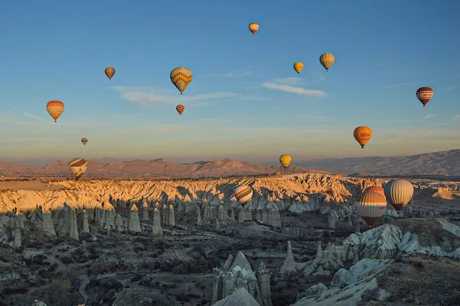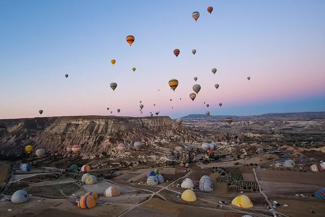 Votre journée comprend la prise en charge aller-retour à votre hôtel en Cappadoce, l’assurance vol complète, des encas avant le décollage, environ une heure de vol au-dessus des vallées et cheminées de fées de Göreme avec un pilote local expérimenté, un verre de champagne (ou sans alcool) à l’atterrissage, ainsi qu’un certificat de vol personnalisé en souvenir.
