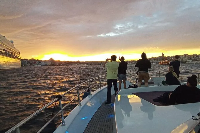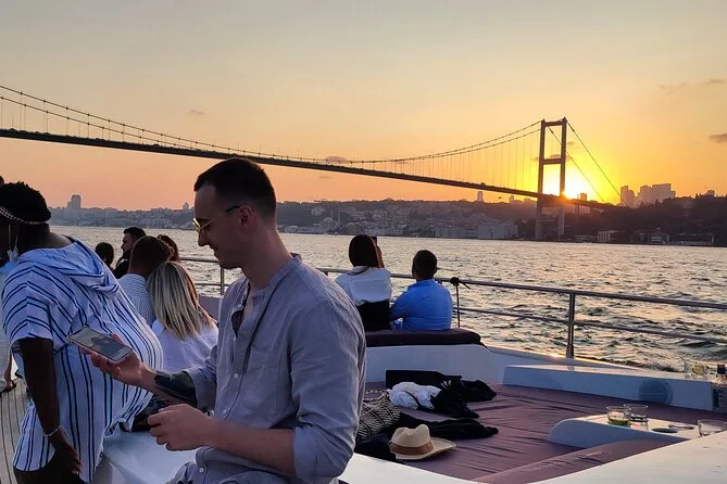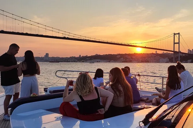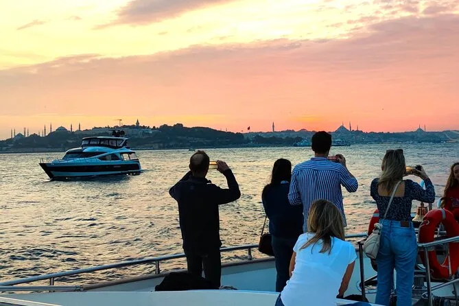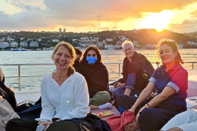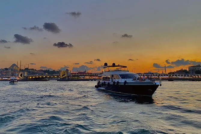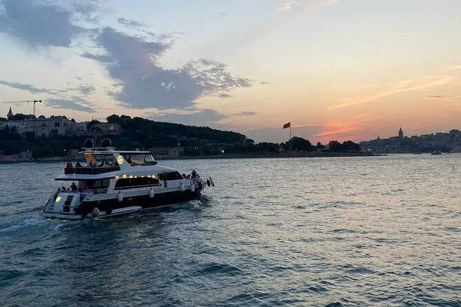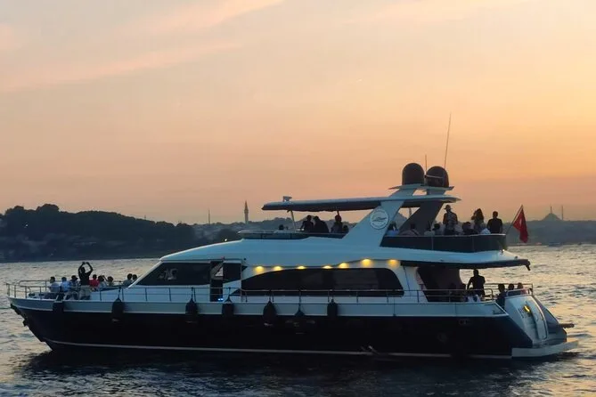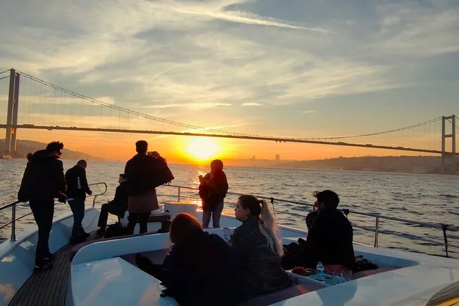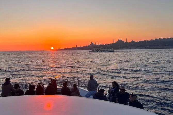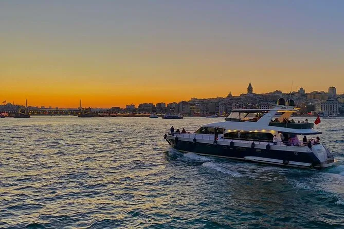 Votre soirée comprend une croisière en petit groupe sur un yacht le long du Bosphore à Istanbul avec des douceurs turques traditionnelles comme baklava et biscuits, des plateaux de fruits frais de saison, café ou thé servis à bord ainsi que du sharbat frais ; le tout accompagné d’un guide local qui partage des histoires sur chaque palais et pont croisés avant le retour au port après le coucher du soleil.