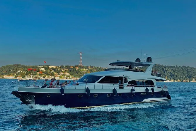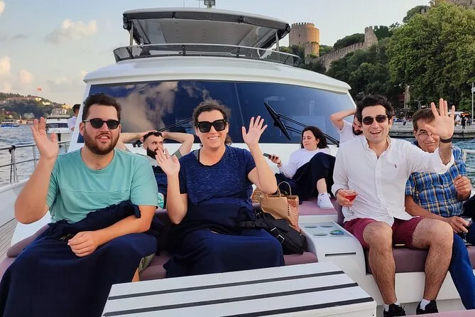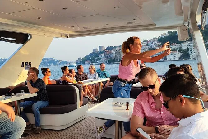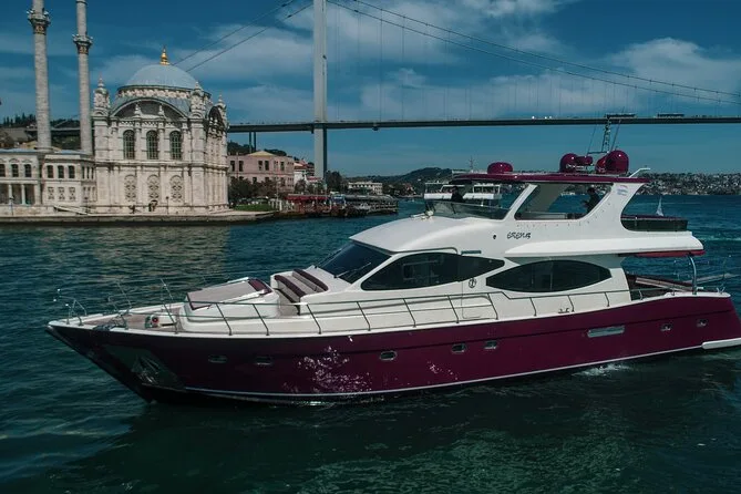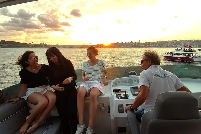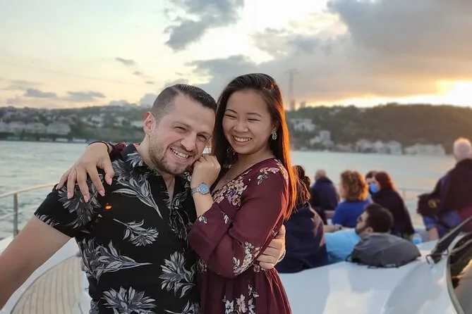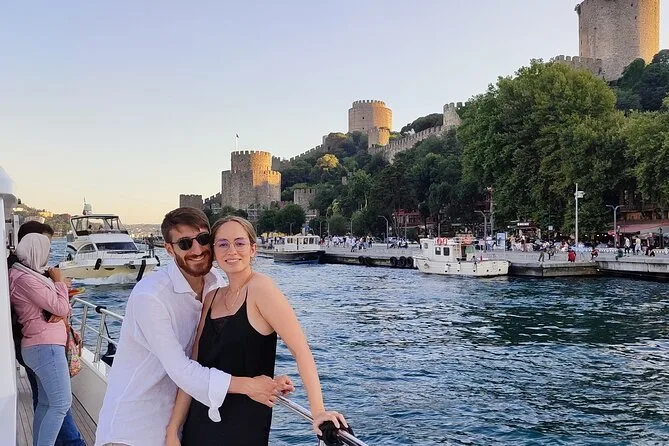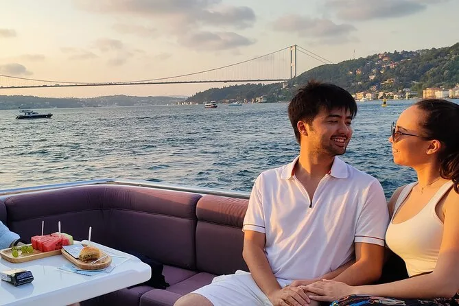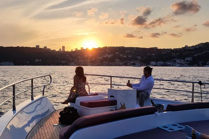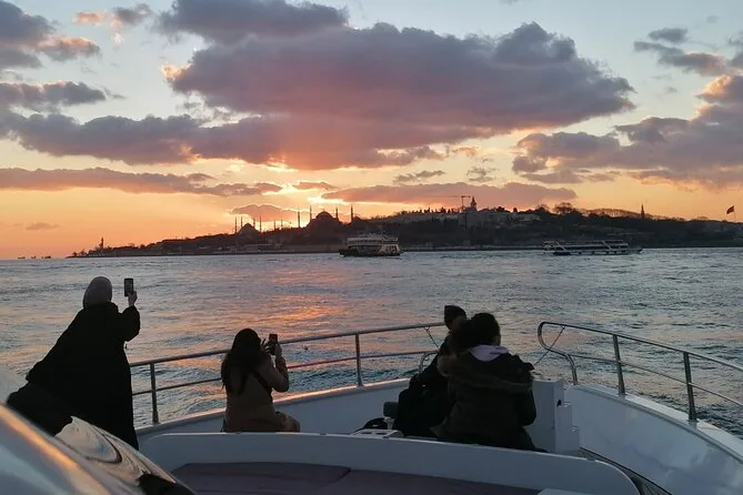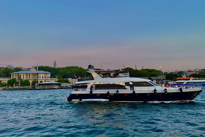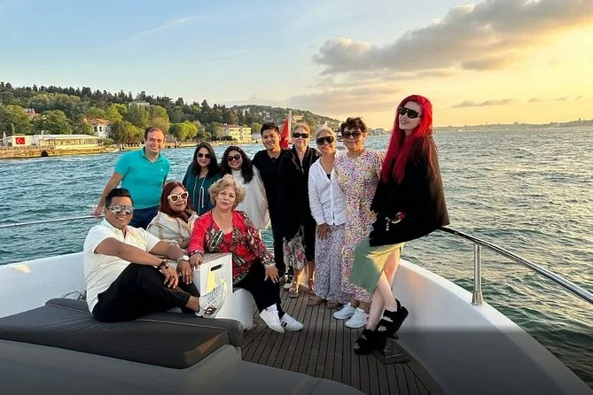 Votre soirée comprend une croisière en petit groupe sur un yacht le long du Bosphore à Istanbul avec des douceurs turques traditionnelles comme baklava et biscuits, des plateaux de fruits frais de saison, café ou thé servis à bord ainsi que du sharbat frais ; le tout accompagné d’un guide local qui partage des histoires sur chaque palais et pont croisés avant le retour au port après le coucher du soleil.