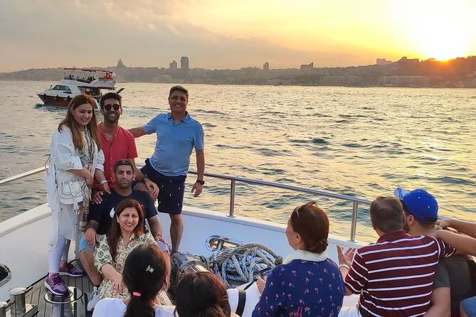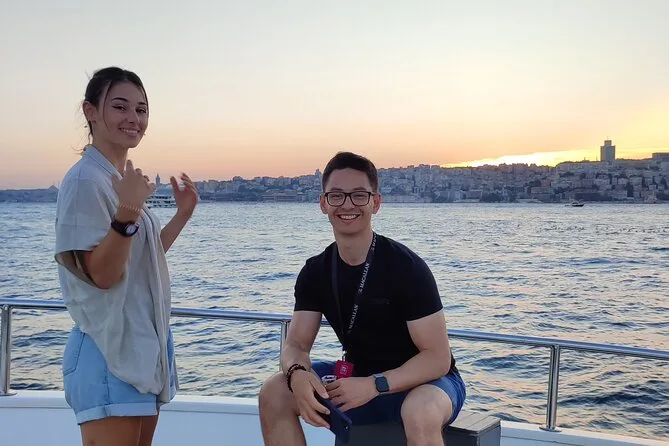 Votre soirée commence par un embarquement en groupe à la marina, avec un guide local expérimenté qui commente la croisière le long des sites majeurs d’Istanbul, côté européen et asiatique. Fruits frais de saison, biscuits savoureux et baklava sont servis avec une limonade maison à la menthe, ainsi que thé et café tout au long du trajet. Des toilettes sont à disposition à bord avant le retour à terre après le coucher du soleil.