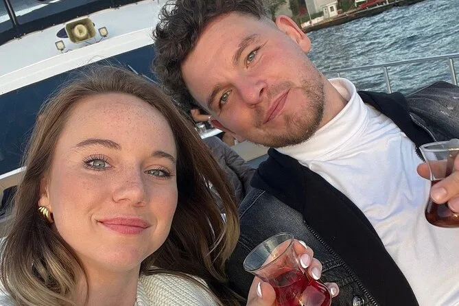 On me tend un verre de limonade — avec de la menthe fraîche flottant à la surface, encore bien fraîche grâce aux glaçons. Je m’appuie contre la rambarde de ce yacht sur le Bosphore, les chaussures enlevées parce que pourquoi pas, et la ville commence doucement à s’envelopper dans cette lumière dorée si particulière. Notre guide, Emre, nous montre le palais de Dolmabahçe sur la gauche. Il raconte comment les sultans observaient les navires passer par ces mêmes fenêtres. Une légère odeur de mer se mêle à une douceur sucrée — c’est le baklava qui circule. Je n’aurais jamais imaginé savourer un dessert en glissant devant des palais.