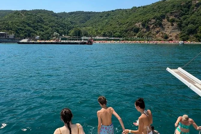 Sur le chemin du retour, on a jeté l’ancre dans une crique pour une baignade. L’eau n’était pas aussi froide que je l’imaginais — juste ce qu’il faut pour me réveiller. Certains prenaient le soleil sur le pont, d’autres regardaient les mouettes se chamailler pour des miettes. La lumière dorée enveloppait la forteresse de Rumeli et le palais de Beylerbeyi alors que nous reprenions la route vers Istanbul. Cem racontait des histoires de sultans et d’empires, mais honnêtement, j’étais à moitié ailleurs, perdu dans ce sentiment qu’on a quand on sait qu’on va garder un souvenir précieux sans pouvoir l’expliquer. Alors oui — si vous cherchez une croisière en yacht sur le Bosphore avec baignade en mer Noire depuis Istanbul, c’est celle-ci qu’il vous faut.