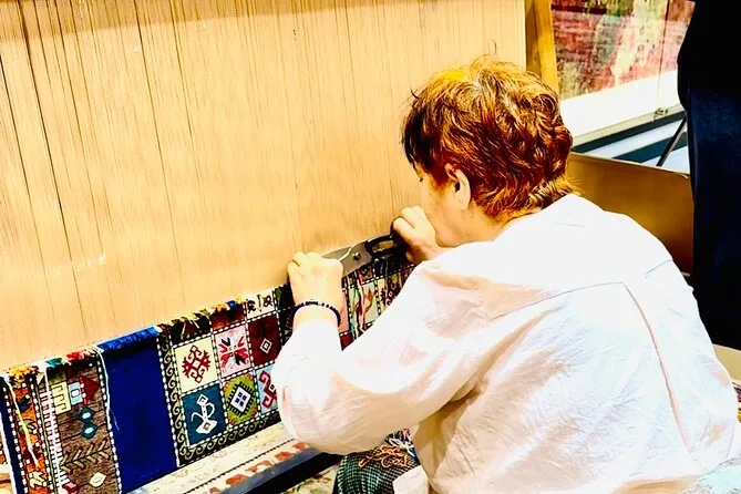 La Citerne Basilique était plus fraîche que dehors, presque humide au toucher. Des poissons filaient sous les têtes de Méduse en pierre pendant qu’Ece chuchotait sur les anciens systèmes d’eau (elle a presque rendu l’ingénierie romaine magique). Nous sommes aussi passés par la citerne Nakkas — plus petite, plus calme, avec un étrange écho quand on parle. Puis une démonstration de tapis a suivi ; honnêtement, je m’attendais à m’ennuyer, mais voir ces femmes nouer la laine à la main était fascinant. Le déjeuner a été animé : kebabs qui grésillaient, salade acidulée au citron, tout le monde se passant les assiettes comme en famille, même si on venait juste de se rencontrer.