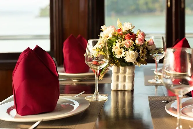 Votre voyage comprend la navette aller-retour depuis les hôtels du vieux quartier de Hanoï via une navette express, les billets pour toutes les visites comme la grotte Sung Sot et l’île de Titop, un guide local anglophone pendant toute la croisière, la nuit en cabine climatisée avec douche privée, tous les repas principaux dont un dîner barbecue et un petit-déjeuner buffet à bord (avec cours de cuisine), le matériel de kayak pour explorer la baie d’Ha Long par vous-même — sans oublier les petites attentions comme le verre de bienvenue et l’eau en bouteille, avant un retour confortable à Hanoï.