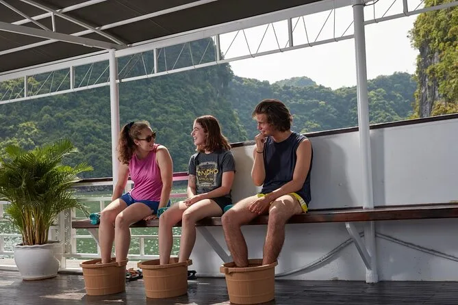 Ce n’est pas précisé ; attendez-vous à une connexion limitée en naviguant dans la baie d’Ha Long.