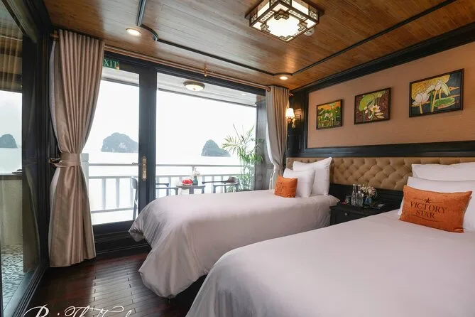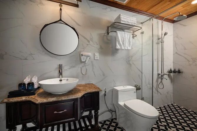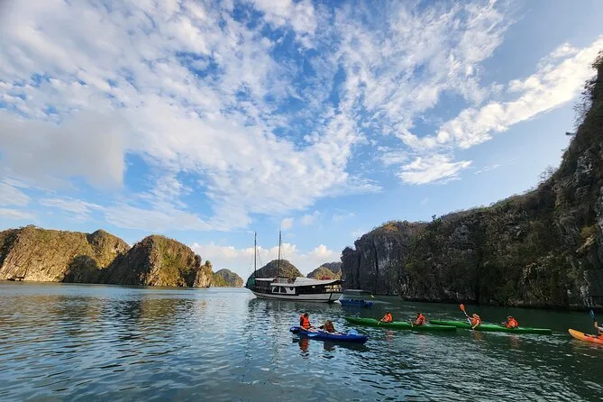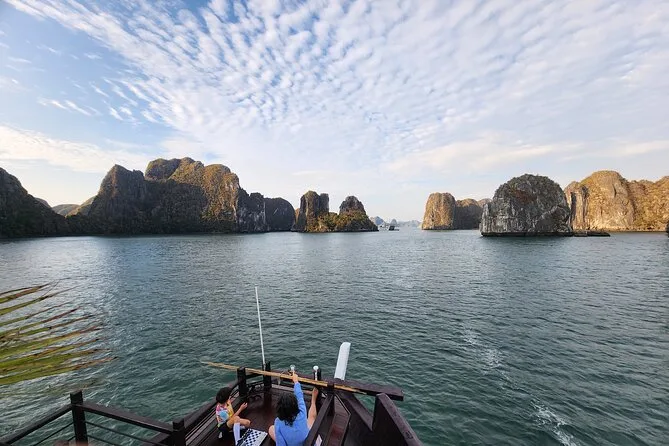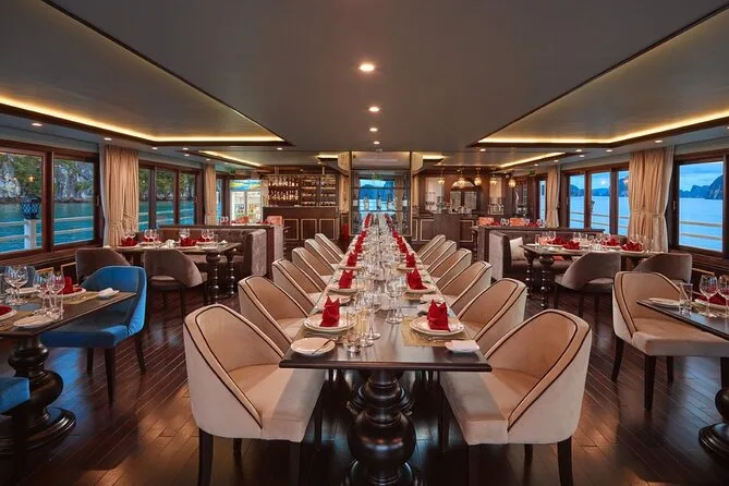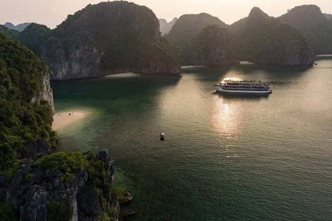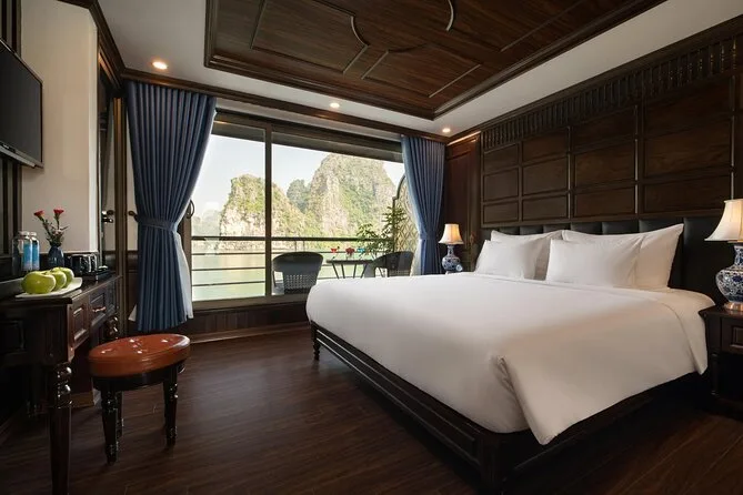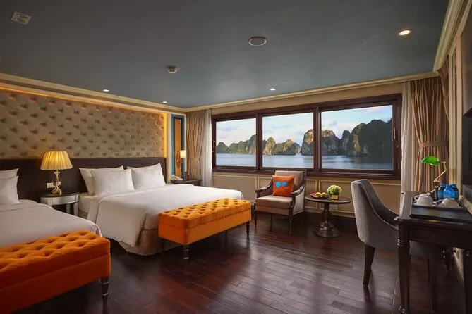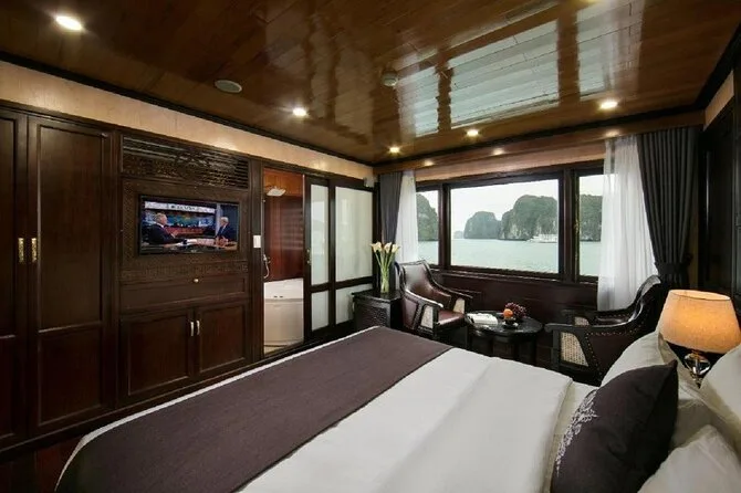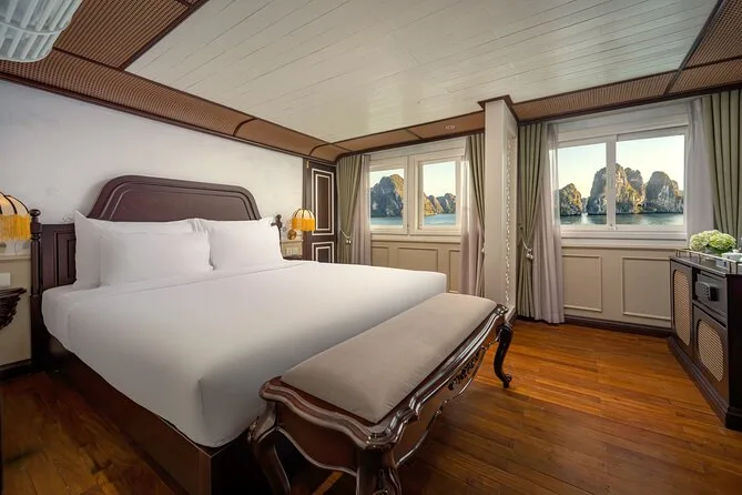 Vos deux jours comprennent le transfert hôtel dans le Vieux Quartier de Hanoi, tous les frais d’entrée pour les grottes et îles selon votre itinéraire, le matériel de kayak ou promenade en bateau en bambou selon les conditions, les repas vietnamiens en pension complète (avec options végétariennes si besoin), une cabine privée vue mer avec climatisation et douche chaude, ainsi que des extras comme un atelier cuisine à bord et la pêche au calamar sous les lumières du pont avant le retour en transfert en milieu d’après-midi vers Hanoi.