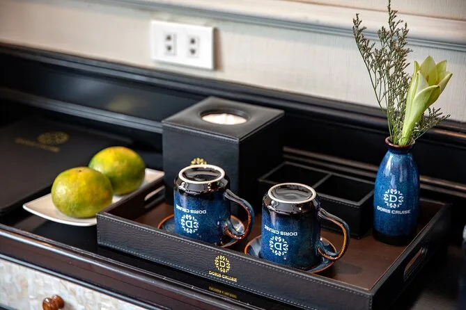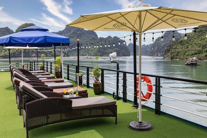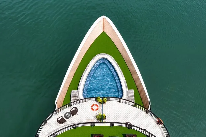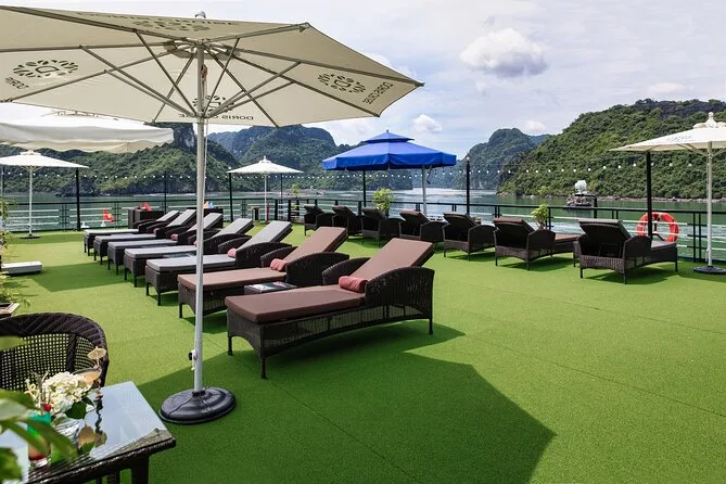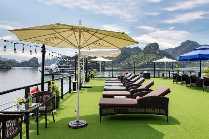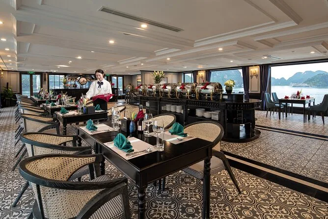 Votre journée comprend un transfert aller-retour en limousine depuis Hanoi, les droits d’entrée dans la baie de Halong & Lan Ha, tous les repas (déjeuners, dîners, petits-déjeuners), kayak ou balade en bateau bambou guidée par des locaux à Tra Bau et dans la grotte Dark & Bright, un guide anglophone comme Minh qui anime sans être envahissant, une démonstration de Tai Chi au lever du soleil sur le pont (pour les lève-tôt, sans pression), un hébergement en suite de luxe avec balcon privé, un verre de bienvenue, et surtout beaucoup de moments pour juste s’arrêter et admirer la baie qui défile.