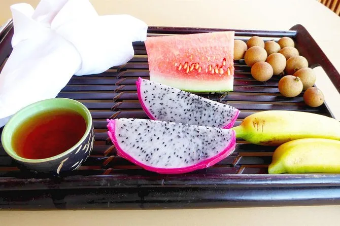 Le déjeuner est inclus — attendez-vous à des plats vietnamiens classiques servis dans un cadre de verger. Des options végétariennes peuvent être prévues si vous nous en informez à l’avance.