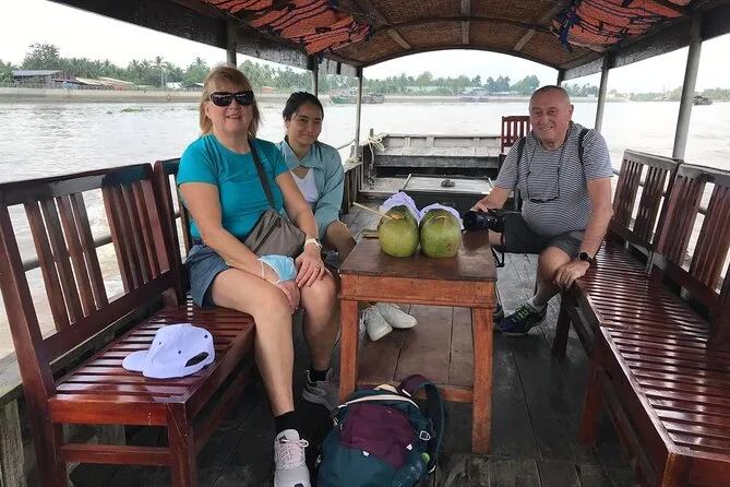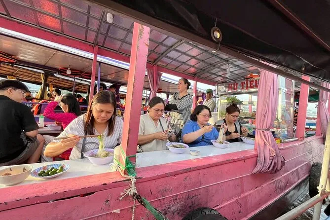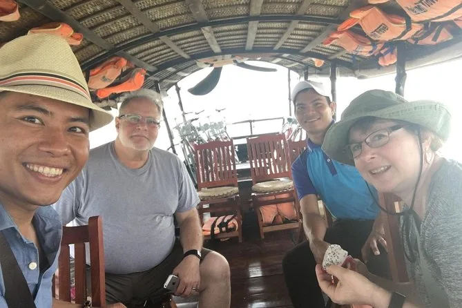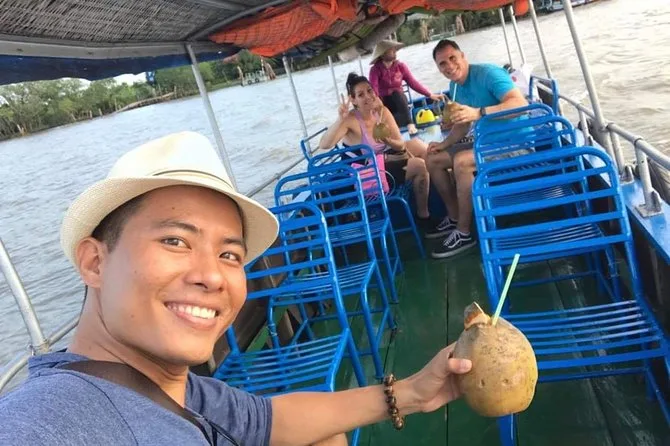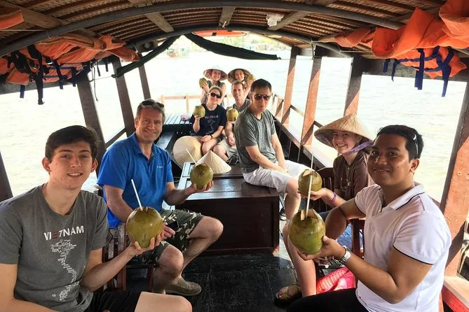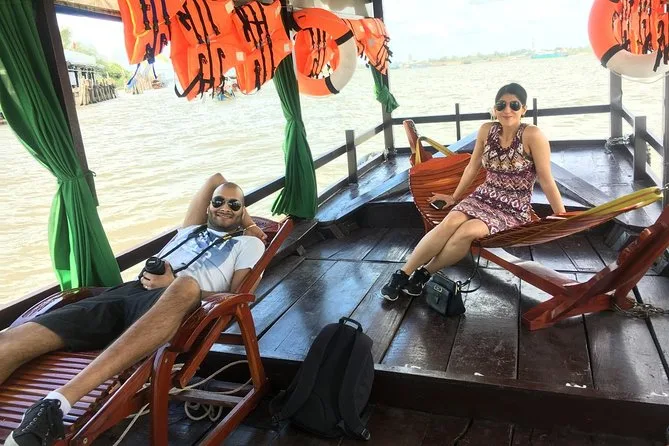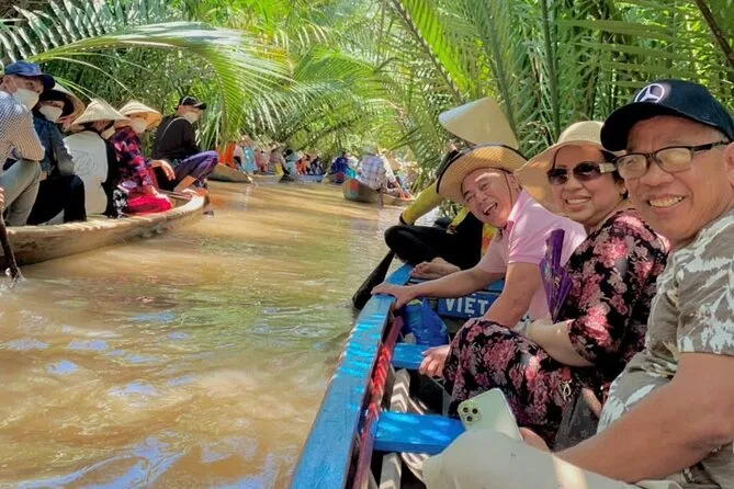 Votre voyage comprend tous les repas principaux (petits-déjeuners, déjeuners, dîner), les frais d’entrée à chaque site mentionné, des balades privées en bateau à travers les canaux du delta du Mékong, de l’eau en bouteille et des mouchoirs tout au long de la journée, ainsi que des extras pratiques comme des imperméables et des gilets de sauvetage si nécessaire. Un petit cadeau vous attend également à l’arrivée — et oui, tout est organisé pour que vous puissiez simplement vous détendre et profiter de chaque étape.