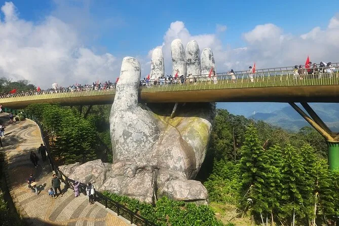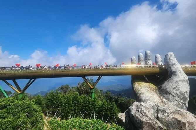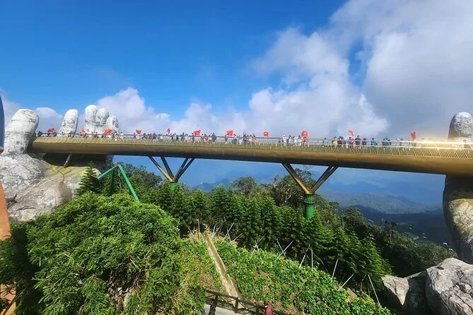 Vous devancerez la foule au célèbre Golden Bridge du Vietnam grâce à un départ matinal depuis Da Nang ou Hoi An. Profitez des vues montagneuses en téléphérique, explorez les jardins fleuris et le Village Français, savourez de la musique live accompagnée d’une bière offerte, et détendez-vous autour d’un déjeuner — le tout avec un guide local sympathique.