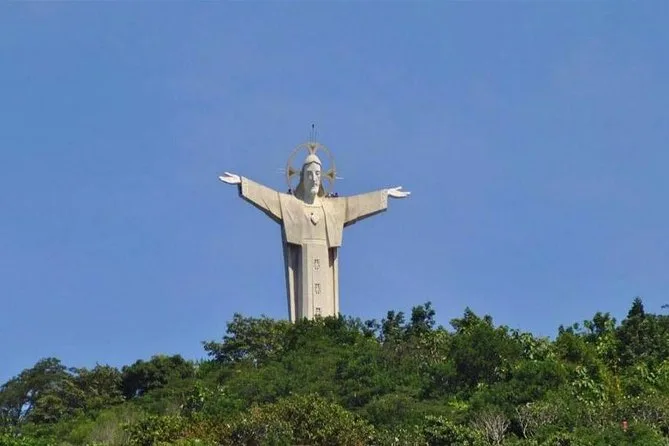 Nous avons ensuite rampé dans une partie des tunnels de Long Phuoc — étroits et sombres, avec une fraîcheur humide et cette odeur de terre argileuse qui s’accroche aux vêtements. Puis, cap sur la plage de Vung Tau pour le déjeuner. L’endroit était simple mais animé — un lieu nommé Quán Biển Xanh où l’on servait du poisson frais accompagné de rouleaux de riz et d’une sauce acidulée (avec aussi des options véganes). Je me souviens avoir entendu des enfants rire quelque part derrière la cuisine pendant que nous mangions.