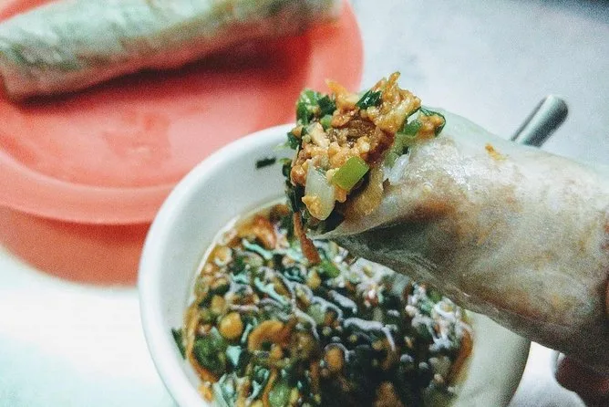 Partez à moto dans Ho Chi Minh avec des guides locaux qui connaissent tous les raccourcis et les meilleures adresses. Goûtez au riz gluant à la banane grillée, au Bun Bo Hue riche, au bœuf en feuille de bétel, aux crêpes du Mékong, et terminez par une soupe sucrée sous les vieux immeubles — avec jus de canne ou bière en accompagnement.