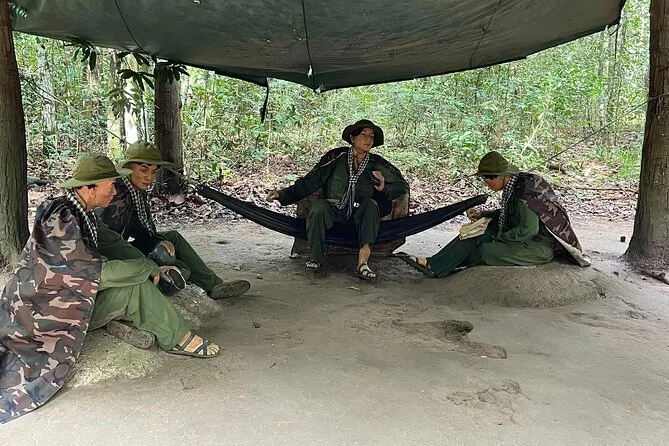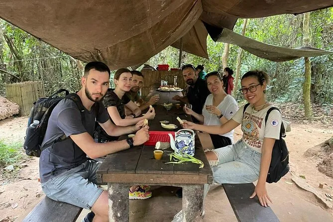 Votre journée comprend la prise en charge à l’hôtel à Ho Chi Minh, tous les billets d’entrée pour les sites comme les tunnels de Cu Chi et les monuments de la ville, un véhicule climatisé pour vos déplacements, de l’eau en bouteille, un déjeuner traditionnel vietnamien (rouleaux de printemps et plus), des lingettes pour se rafraîchir après l’exploration souterraine, ainsi que des encas locaux comme le manioc et le thé avant le retour en ville.