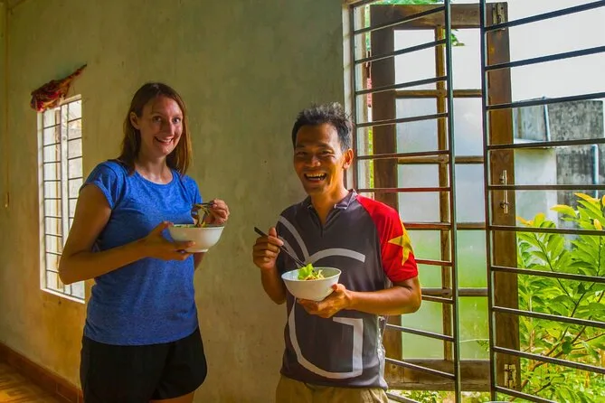 À Tra Que, on s’est arrêtés devant une petite maison avec une terrasse qui dominait des rangées de légumes bien alignés. La famille ne parlait presque pas anglais, mais leurs sourires suffisaient. On a aidé à cueillir des herbes pour notre soupe de nouilles — j’ai essayé de suivre leur rapidité, mais j’ai surtout fini avec de la terre sous les ongles. Le bouillon était léger, mais étonnamment riche (je n’arrête pas d’y penser). Minh nous a expliqué que chaque herbe a son rôle dans le plat ; j’ai hoché la tête, comme si je comprenais, mais en vrai, je voulais juste une autre assiette.