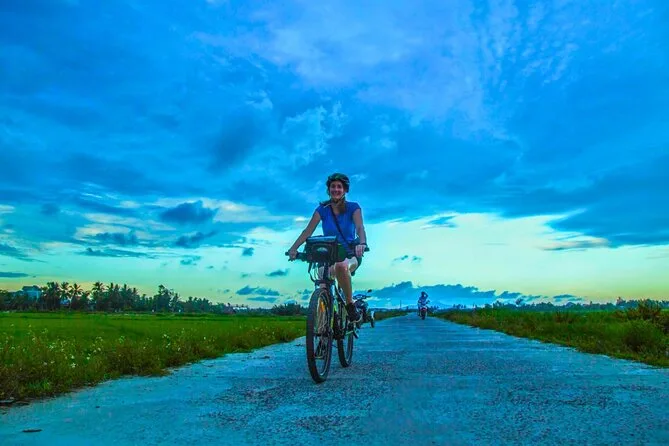 Votre soirée comprend le transfert hôtel aller-retour à Hoi An, la location du vélo (avec siège bébé si besoin), de l’eau pendant la balade, toutes les dégustations dont le dîner chez l’habitant et au restaurant, des snacks en chemin, ainsi qu’un guide local anglophone qui vous fera découvrir à la fois les plats emblématiques et les pépites cachées avant de vous ramener en toute sécurité au point de départ.