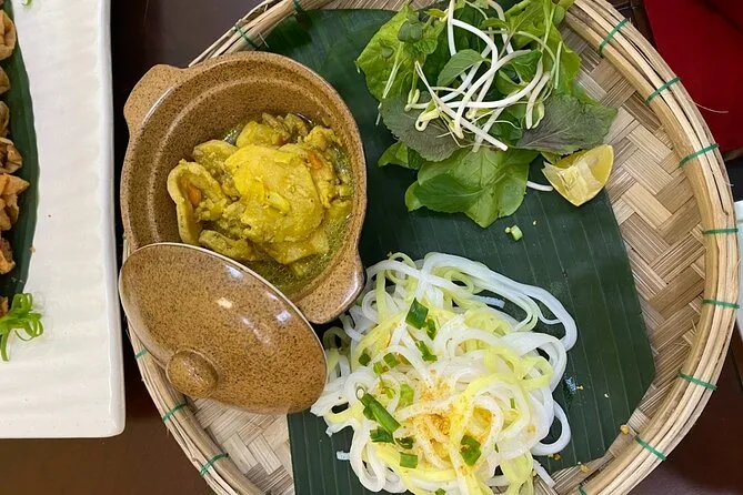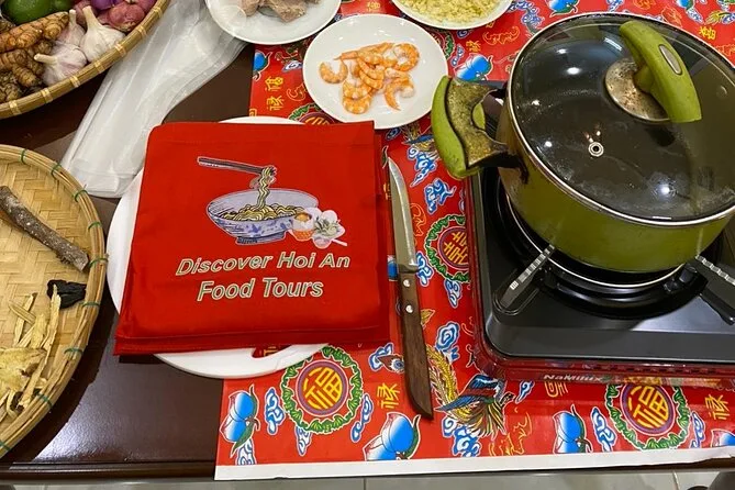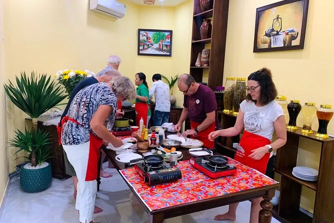 Votre journée comprend une visite guidée du marché de Hoi An, de l’eau fraîche, une bière ou boisson sans alcool, la prise en charge à l’hôtel dans Hoi An, des trajets en voiture électrique écologique, et un cours de cuisine vietnamienne où vous dégustez vos plats !