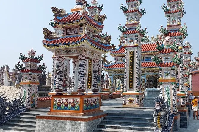 Votre journée comprend la prise en charge à votre hôtel dans le centre de Hue en voiture privée climatisée avec eau en bouteille fournie en cours de route ; tous les frais d’entrée et taxes sont inclus ; votre chauffeur anglophone partage des anecdotes pendant le trajet ; vous ferez une pause à la lagune Lap An, traverserez le col Hai Van avec arrêts panoramiques, explorerez les grottes et temples des Montagnes de Marbre avant d’arriver à Hoi An en soirée.
