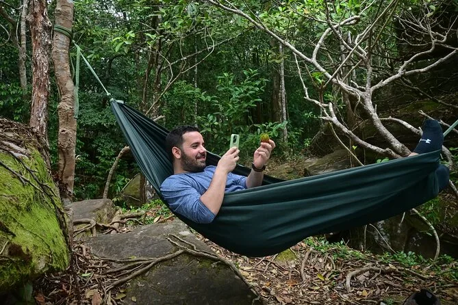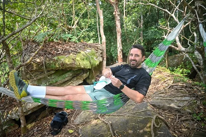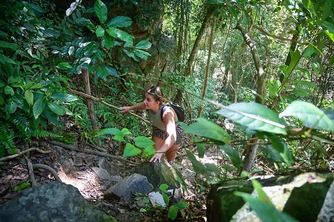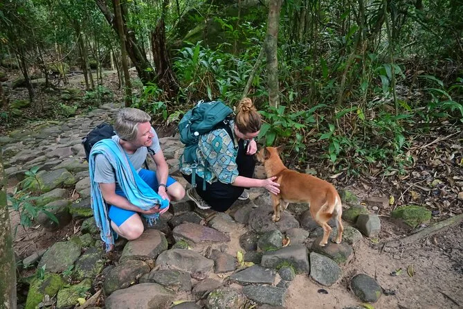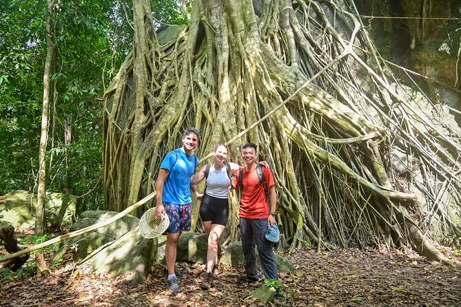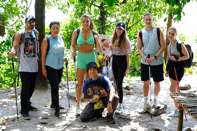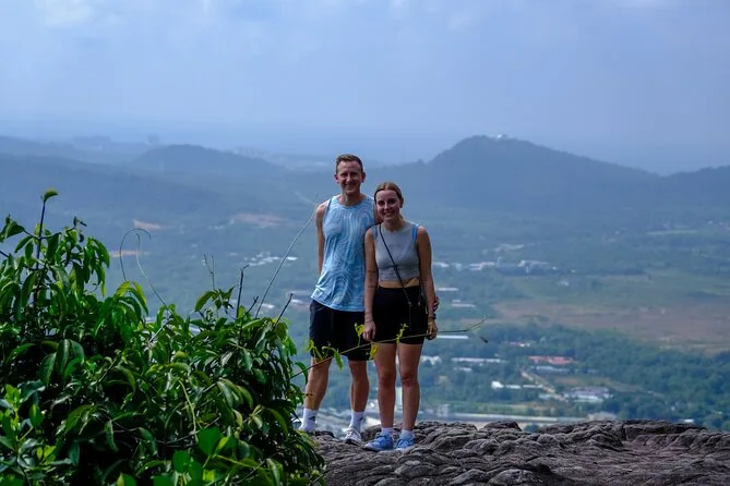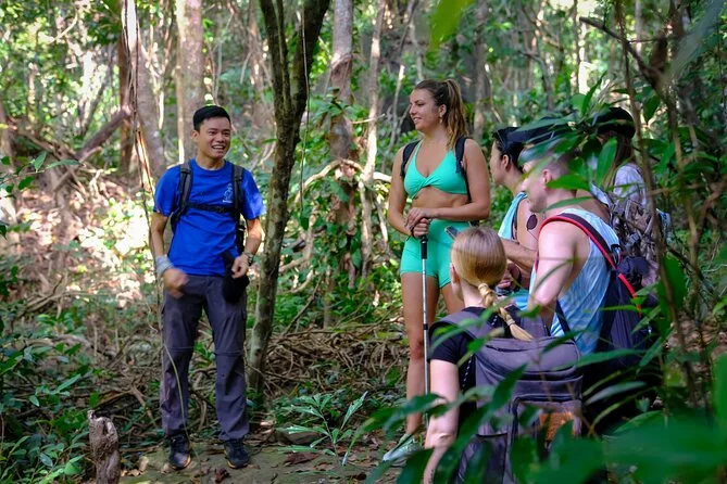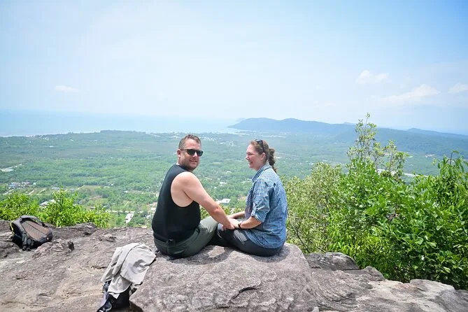 Vous randonnez dans la jungle luxuriante de Phu Quoc avec un guide local, profitez d’une vue panoramique depuis le sommet de Tien Son Dinh, vous rafraîchissez à la source Suoi Tranh ou explorez sa grotte, puis partagez des Banh Xeo croustillants dans un restaurant du coin. C’est intense, beau — et vous rirez plus que prévu.