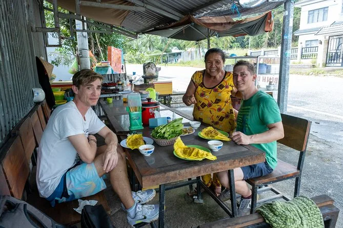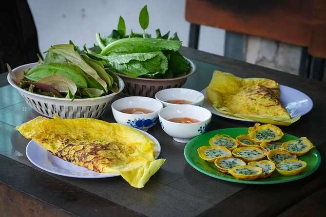 Oui, le déjeuner est compris — des Banh Xeo traditionnels servis dans un restaurant local.