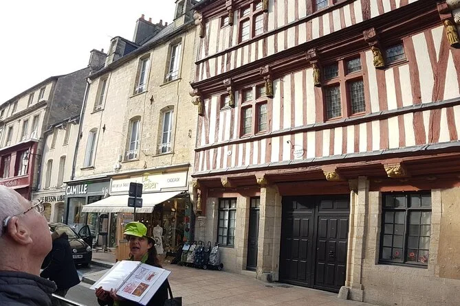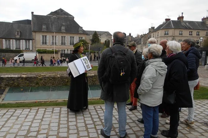 Your experience includes a two-hour guided group walking tour through historic Bayeux entirely in English with lively commentary from your local guide—plus old-time photos to bring stories alive as you explore medieval lanes, riverbanks once used by tanners and dyers, architectural marvels like Bayeux Cathedral, plus plenty of quirky anecdotes along more than twenty stops before finishing back near where you started.