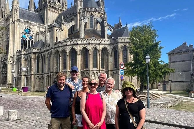 The tour includes a stop at Bayeux Cathedral with commentary outside and inside about its architecture.