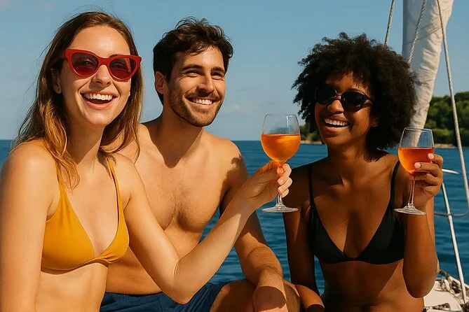 “You wanna try steering?” That’s what our captain, Jean-Luc, asked as we left Cannes behind — I laughed because honestly, I’d never even touched a sailboat wheel before. But he just grinned and nudged me forward, so there I was, hands on the helm, squinting at the sunlight bouncing off the water. The Croisette looked tiny from out here. It’s weird how fast the city noise fades once you’re out in the bay — just wind and gulls and that faint salty smell.