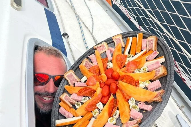 Paddleboarding was next. My friend tried to show off but fell in right away; even Jean-Luc chuckled. We had snacks — olives, bread, cold drinks — sprawled across the deck while music played quietly from somewhere near the cabin (French pop, not my thing but somehow perfect). If you want more than snacks, you can order seafood or pizza delivered right to the boat. Never thought I’d eat wood-fired pizza in a swimsuit.