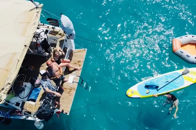 You can swim, snorkel at the Underwater Museum, paddleboard, use an underwater scooter (seabob), fish, relax with snacks and drinks onboard.