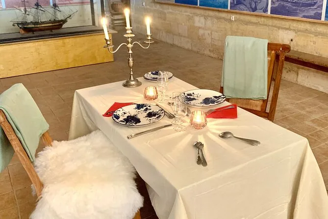 Your day includes a guided walk through Cabernet Franc and Chenin blanc vineyards near Chinon, an atmospheric cellar visit inside centuries-old limestone caves, an educational tasting session in their historic stables room, followed by a private picnic lunch set beside the vines with one bottle of château wine per group—plus bottled water and all taxes covered.