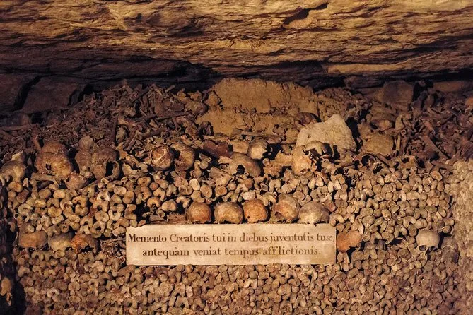 Your afternoon includes entrance tickets for the Paris Catacombs, guided exploration of both main tunnels and secret sections usually closed off to regular visitors, plus storytelling from an expert English-speaking guide—all in an intimate group of just six people at select times.