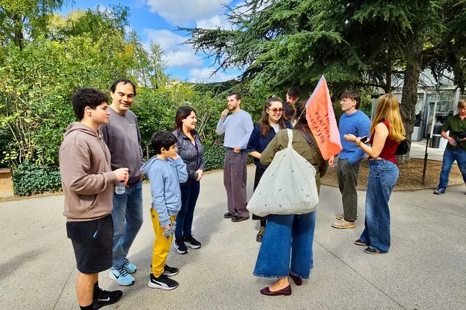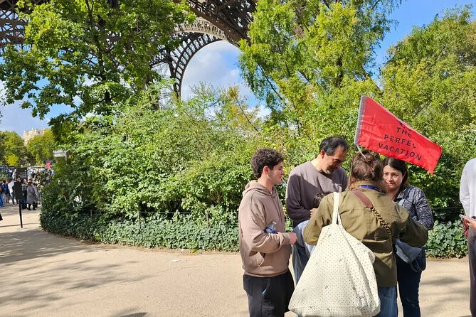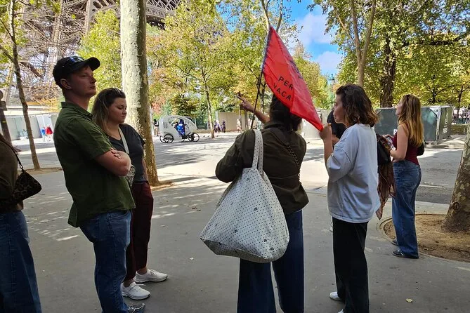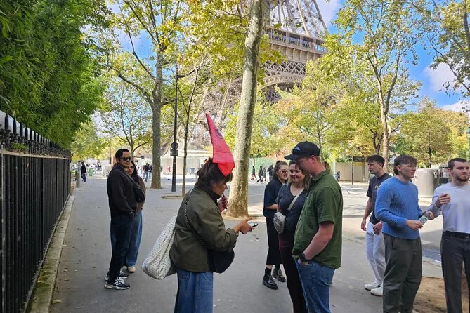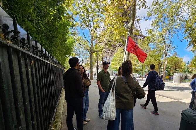 The meeting point is 7 Avenue Silvestre de Sacy in Paris; look for guides with red caps and signs.