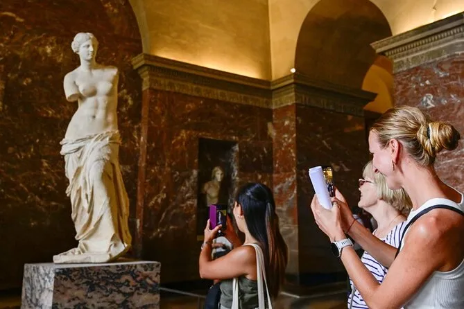 Your day includes skip-the-line entry to the Louvre Museum itself (no waiting outside!), a passionate English-speaking guide who shares stories behind masterpieces like Mona Lisa and Venus de Milo, time exploring sculptures and crown jewels together in a small group of no more than 18 guests—and all admission fees are covered so you can just focus on soaking it all in.
