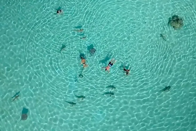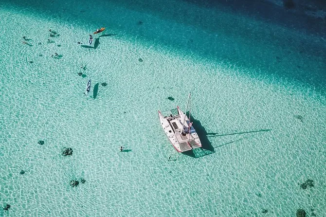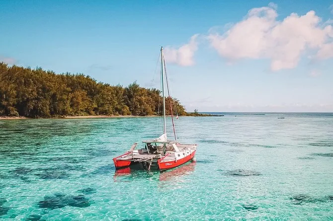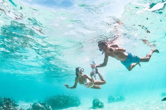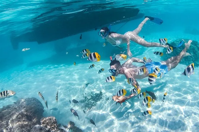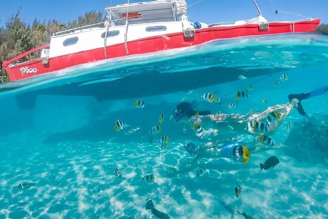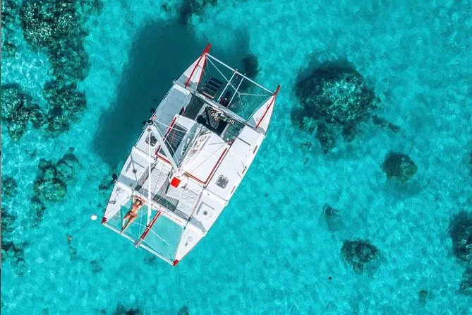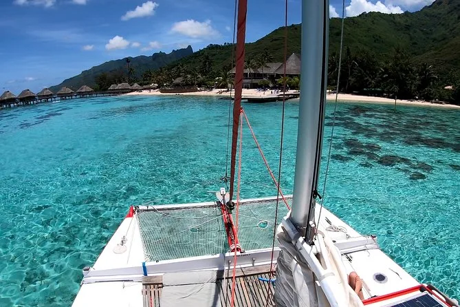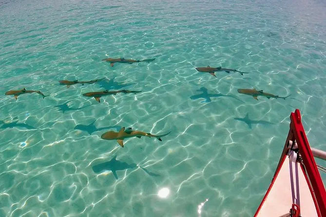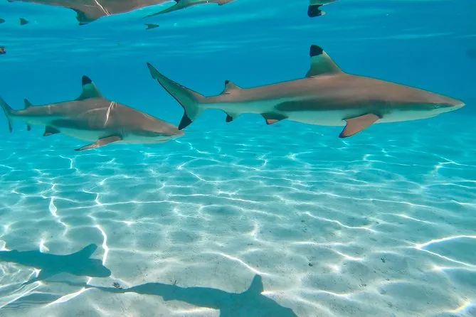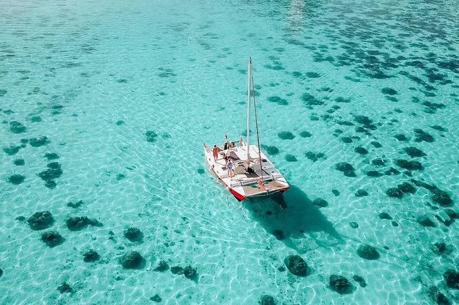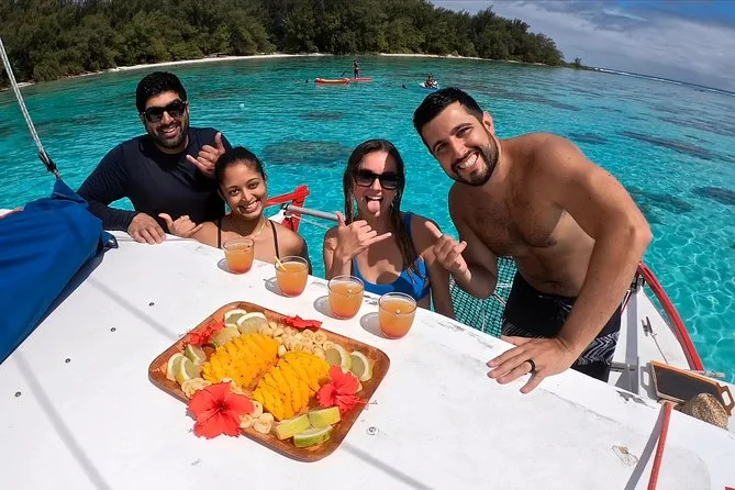 Your half-day includes round-trip shared transfer from your hotel or meeting point in Moorea, sailing along the north coast aboard Taboo with stops at coral gardens for snorkeling (all gear provided), swimming alongside black tip sharks and stingrays if you’re lucky enough to spot them that day, plus fresh tropical fruits served onboard along with water, tropical juices or a Mai Tai cocktail before heading back ashore sun-kissed and sandy-footed.