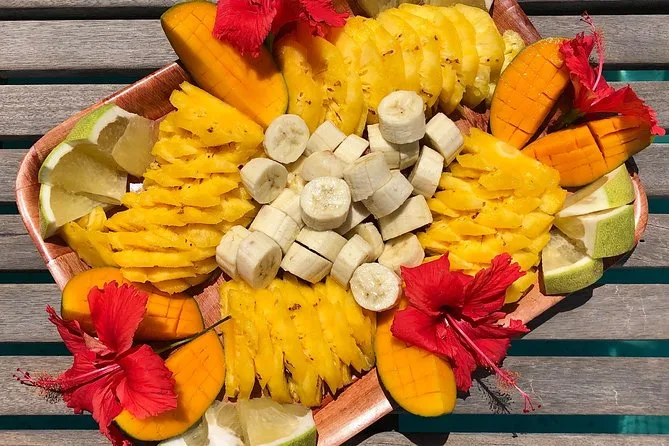 Yes, tropical juices, Mai Tai cocktails, water, and a plate of fresh local fruits are included.