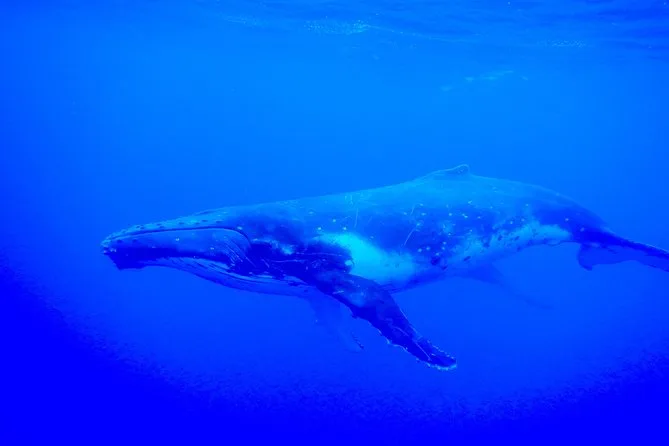 You’ll float in Moorea’s lagoon listening to real whale songs through a hydrophone before slipping into clear water to (maybe) swim alongside humpbacks—always guided by locals who respect their space. Expect moments of silence and sudden awe as you watch these giants surface or hear them sing beneath your fins.