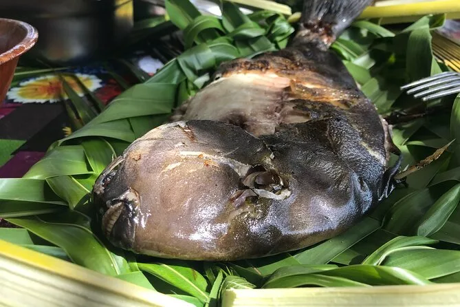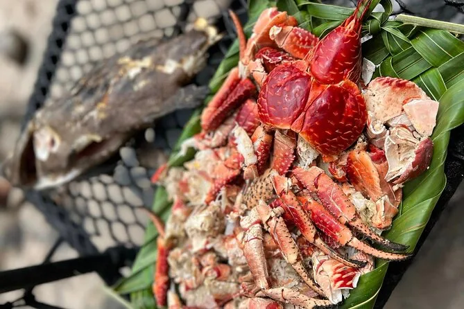 The tour includes a tasting of coconut crab and Rangiroa wine as part of lunch.