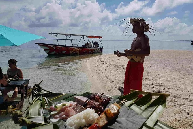 You’ll enjoy lunch with your feet in the water on a private motu; grilled fish is typically served along with fresh coconut.