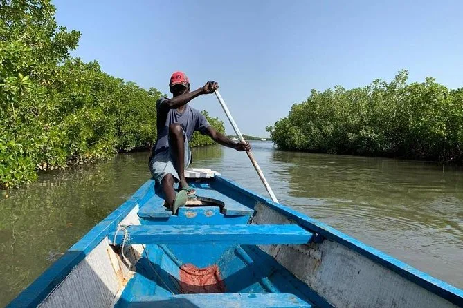 You’ll explore the forest with a guide, take a canoe ride on Mandinga Bolong creek in a traditional pirogue, try fresh palm juice, and can meet a local Marabout for fortune telling.