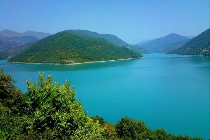 The first thing I noticed was the color of the Zhinvali reservoir — sort of turquoise but not quite, especially under clouds. Our guide Nino pulled over so we could take it in. She pointed out how the water line shifts every season; I hadn’t thought about that before. The bus smelled faintly like last night’s rain and someone’s sweet cologne. There were only eight of us, which meant everyone kind of fell into chatting or just staring out at the green hills rolling by.