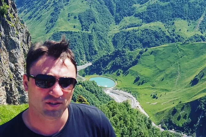 We started rolling out of Tbilisi just after breakfast — still yawning, coffee in hand, watching the city fade into those endless green hills. Karlo was already chatting about the Military Highway’s old stories before we’d even left the city limits. I kept glancing at the windows; every few minutes the light changed, bouncing off Jinvali reservoir so blue it almost looked fake. We pulled over for photos (of course), but honestly I just stood there for a minute trying to take in that cold morning smell — pine and something sweet I couldn’t place yet.