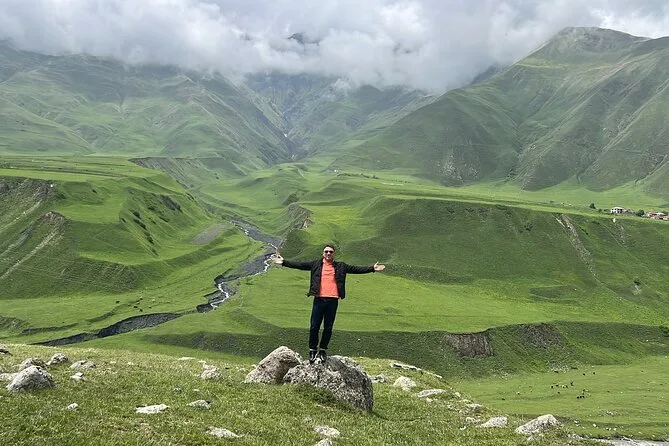 You’ll feel Georgia’s wildness on this Kazbegi & Gudauri day trip from Tbilisi: fortress stones under your hand at Ananuri, honey on your tongue by mountain roadsides, wind-whipped views at Gergeti Trinity Church, and warm food with new friends before heading home.