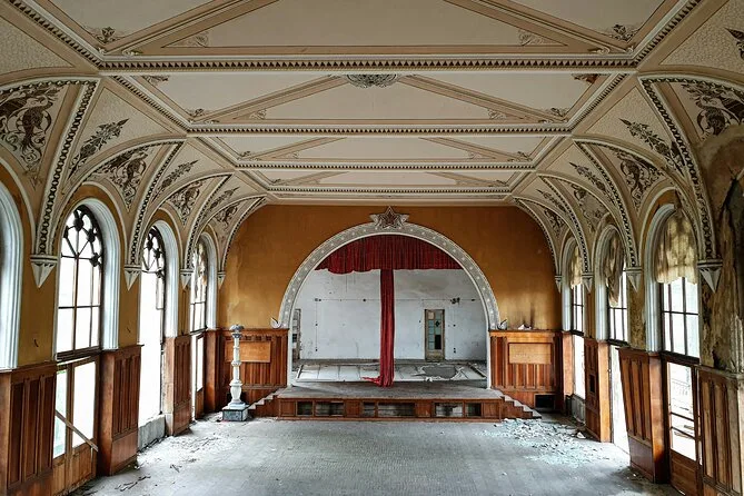 You’ll explore abandoned spa buildings with marble halls, overgrown courtyards, mosaics and unique photo opportunities.