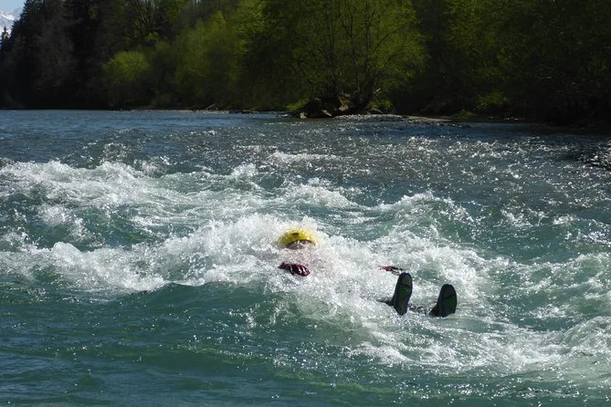 Your day includes high-quality safety equipment: wetsuit, neoprene socks, life jacket and helmet are all provided before you set out with your local guide on the Iller River — so you just need to show up ready to paddle and laugh along with your team.