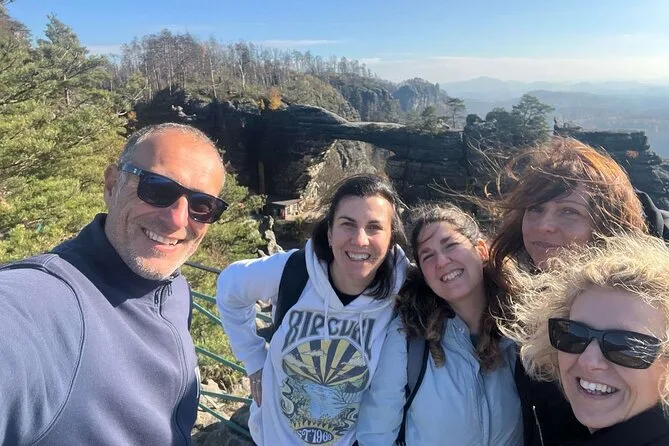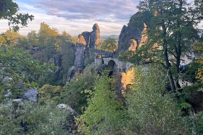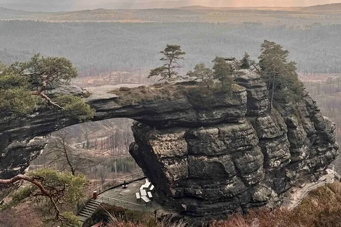You visit Bastei Bridge in Saxon Switzerland plus either Pravčická Gate or Tisá Rocks in Bohemian Switzerland depending on the day.