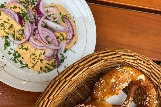 Your evening includes all five beer tastings (three full pours plus three tasters), hearty Bavarian platters with cheese and meat, regional dips and fresh pretzels. You’ll get exclusive entry to the Beer & Oktoberfest Museum plus time exploring Munich’s nightlife—all led by a local guide before you head off into the night on your own schedule.
