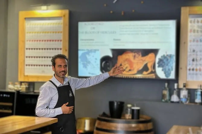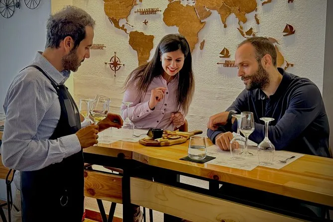 Your 90-minute session includes guidance from a local sommelier, tastings of five different Greek wines paired with artisanal cheeses from across Greece plus Kalamata olives and homemade Cretan rusks; bottled water is provided throughout, along with your own list of wines and a handy cheat sheet for notes to take home.