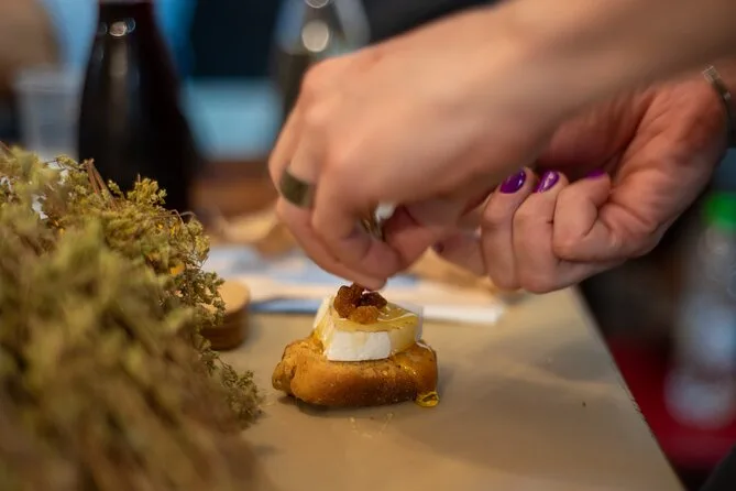 Your day includes a guided walk through Monastiraki and Psiri with tastings of traditional Greek coffee (plus fortune-telling), homemade semolina halva dessert, hands-on gyros or souvlaki making at a local eatery with lunch included, charcuterie boards featuring three types of cheese paired with wine at a family-run market, fresh pies from an artisan bakery, honeyed loukoumades donuts near an old church—and plenty of stories along the way before finishing back in central Athens.